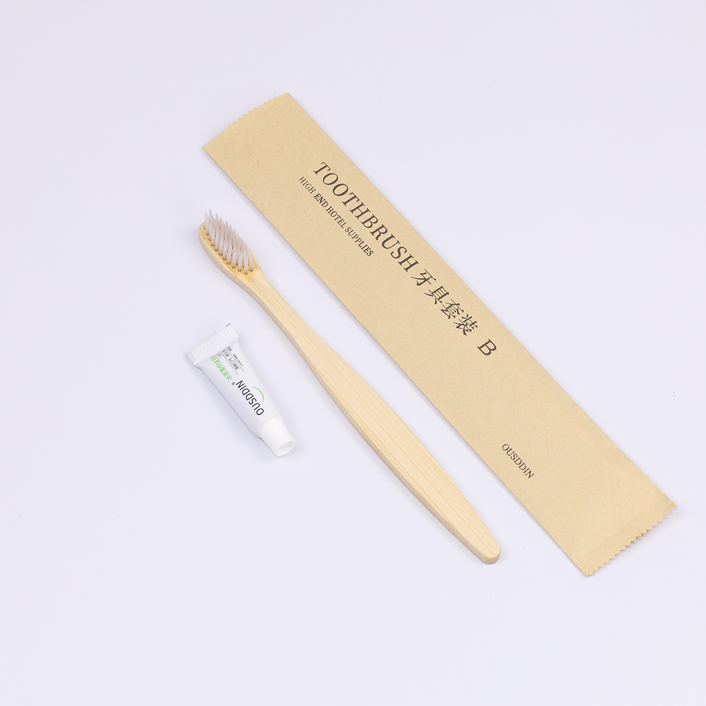 Kraft paper bag+ Bamboo toothbrush + 3g toothpaste