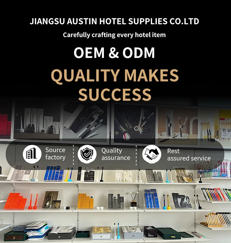 Jiangsu Austin Hotel Supplies Co., Ltd. specializes in the production and sales of high-quality personal care and hotel amenities. With 20 years of expertise in professional travel essentials and continuous development over the years, the company has gradually expanded its product lines. We now offer supermarket daily necessities, bedding, toiletries, toothbrushes, and slippers, catering to diverse customer needs.