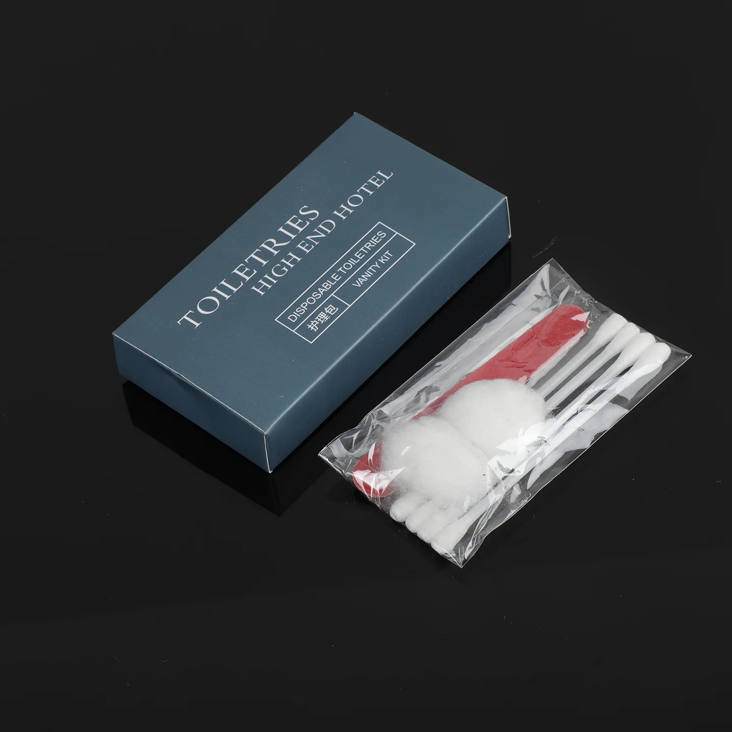 Usually cotton pads,cotton ball, hair tie,cotton buds and nail file or custom